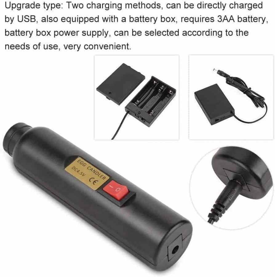 Esta Egg Candler incluye una linterna y dos adaptadores para huevos grandes y huevos pequeños. Es válido tanto para huevos de gallina como para huevos de canario.